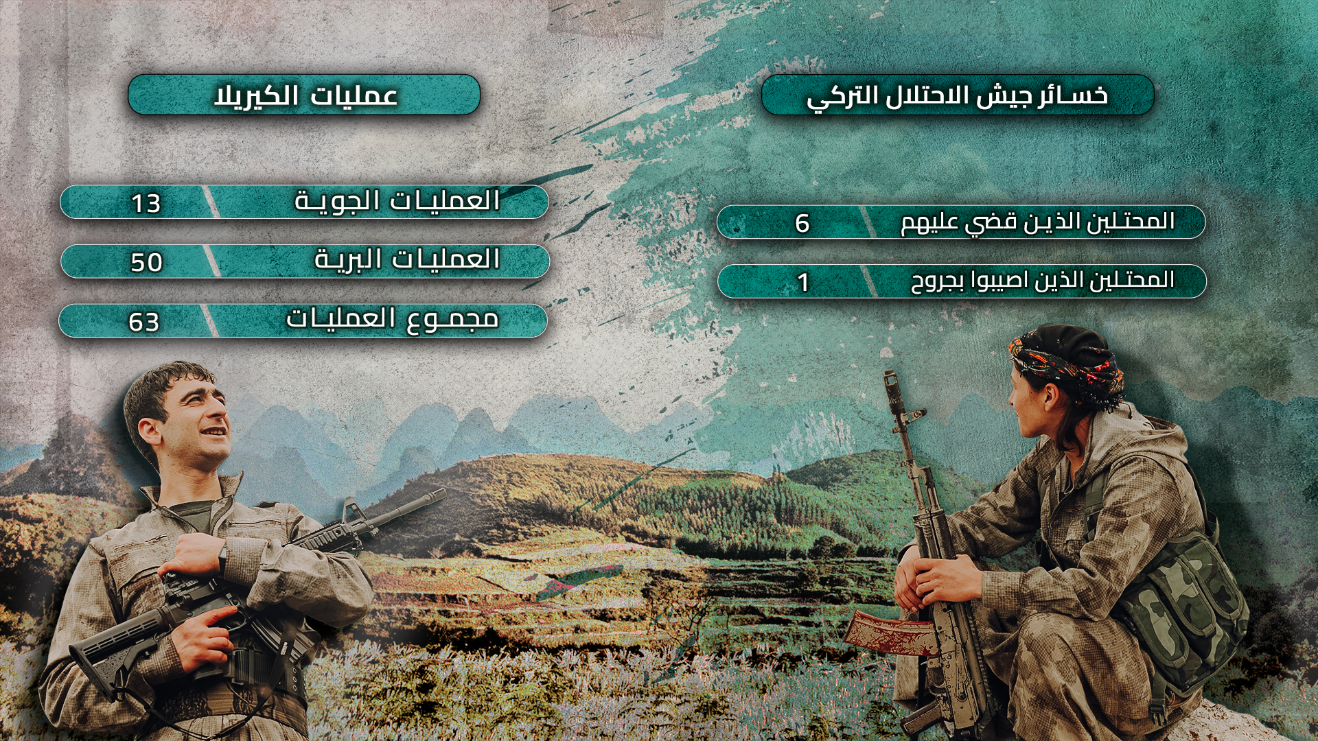 فيما واصلت قوات حرية كردستان نضالها ضد هذه الهجمات دون انقطاع في شمال كردستان ومناطق الدفاع المشروع، وقد نفذت قواتنا، الذين قاوموا هذه الهجمات بشجاعة كبيرة وأداء متميز، 63 عملية باستخدام تكتيكات مختلفة، 13 منها عملية جوية و50 عملية برية، في ظل ظروف الشتاء، وأسفرت هذه العمليات عن مقتل 6 جنود للاحتلال وإصابة جندي آخر، بالإضافة إلى ذلك تم تدمير وإعطاب العديد من الآليات والمعدات والأسلحة العسكرية التابعة لجيش الاحتلال التركي.