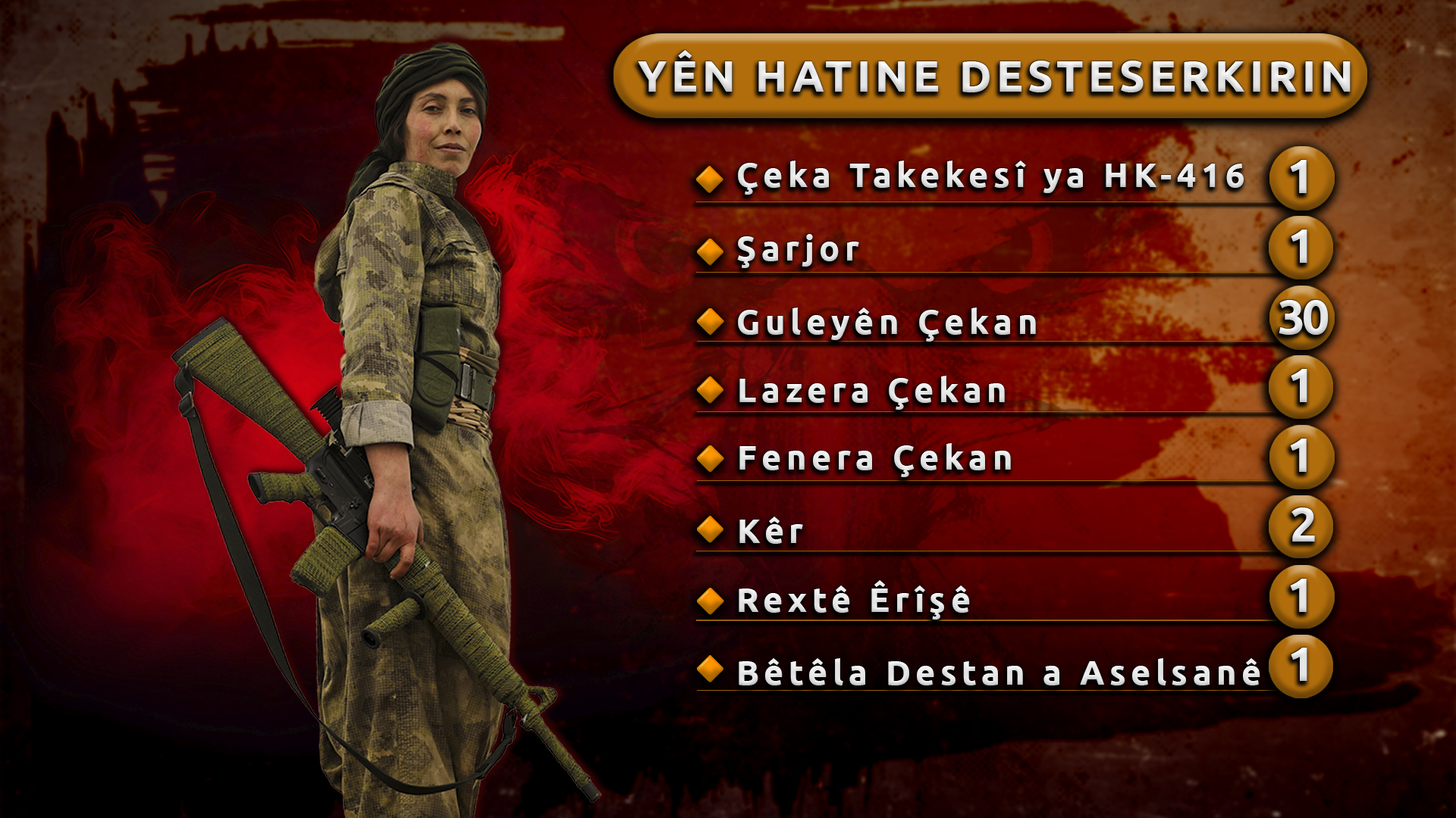 Di şexsê hevrêyên me Asya Alî, Rojger Hêlîn û Memed Cûdî de ku meha Cotmehê şehîd bûn, em hemû şehîdên xwe bi dilsoziyeke mezin, bi hezkirin û hurmet bi bîr tînin. Em soza xwe dubare dikin ku weke Gerîlayên Azadiyê yên Kurdistanê li ser şopa şehîdên xwe bimeşin û têkoşîna wan bi ser bixînin.