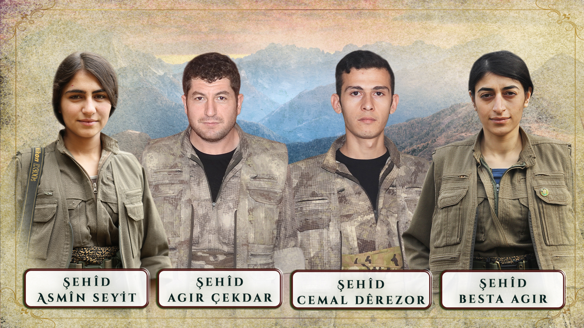 Gerçekleşen çatışma ve bombardımanlarda halkımızın en değerli ve seçkin fedai evlatlarından Agir Çekdar, Besta Agir, Asmîn Seyit ve Cemal Dêrazor yoldaşlarımız şehadete ulaştı. Her anlarını fedaice yaşayan ve savaşta da yüksek cesaretle fedaice bir duruş sergileyen kahramanlarımızı saygıyla anıyor, amaçlarının takipçisi olacağımızı belirtiyoruz. Bu temelde şehitlerimizin değerli ailelerine, yurtsever Kürt ve Arap halklarımıza başsağlığı diliyoruz.