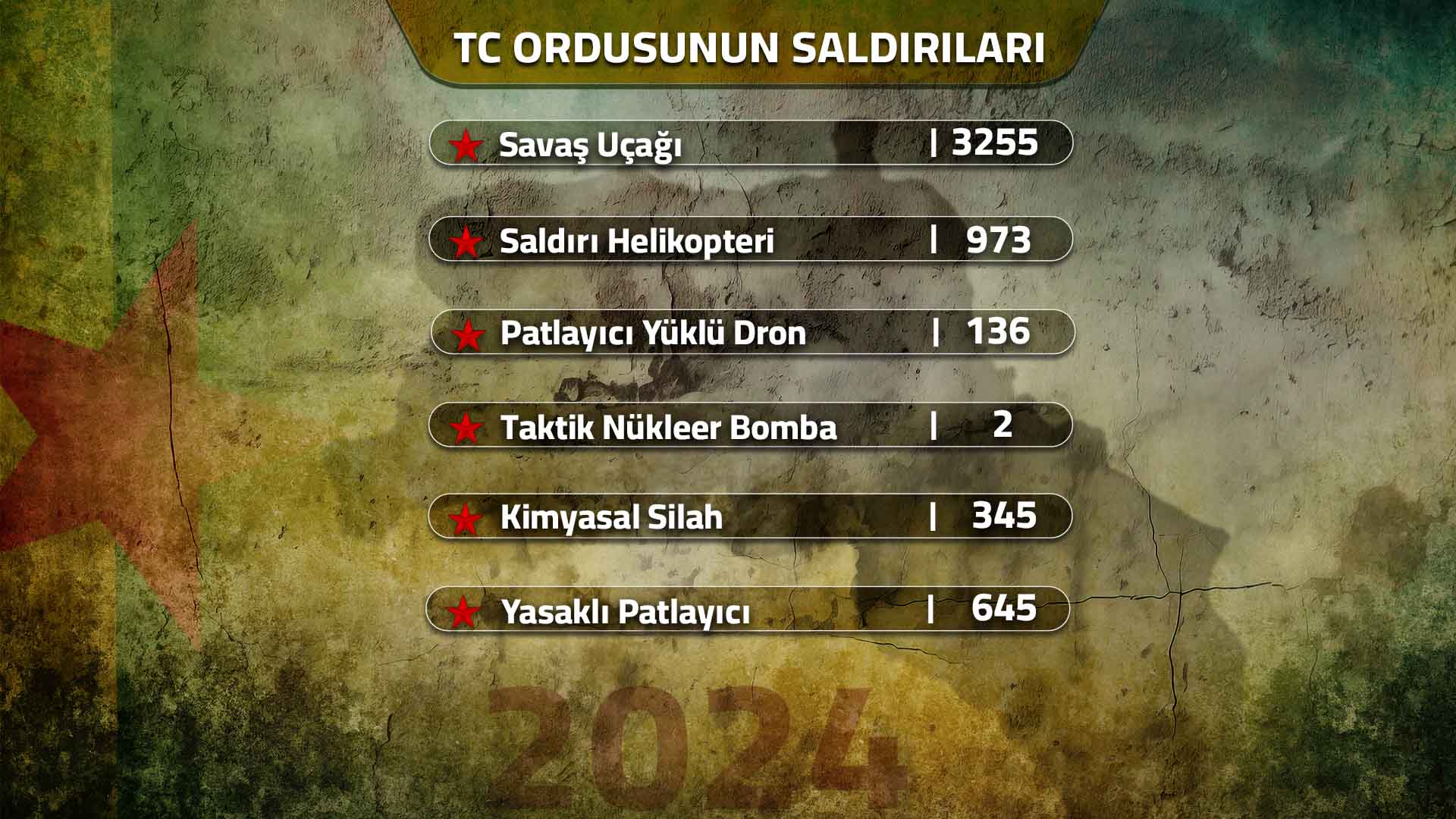 2024 yılının savaş bilançosu şu şekildedir: