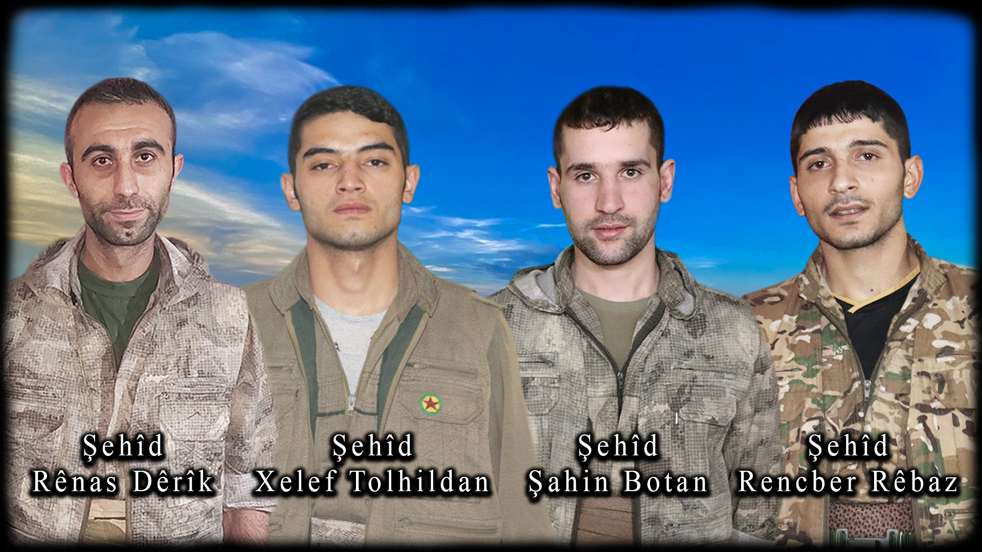 Yaşamdaki fedai duruşlarını düşmana karşı verilen özgürlük savaşımıza da yansıtarak bütünlüklü devrimciler olmayı başaran ve bu özellikleriyle tüm yoldaşlarına öncülük yapan Xelef, Şahin, Rênas ve Rêncber yoldaşlarımızın başta değerli aileleri olmak üzere tüm yurtsever Kurdistan halkımıza başsağlığı diliyor, şehitlerimizin mücadelelerini zaferle taçlandırma sözümüzü yineliyoruz.
